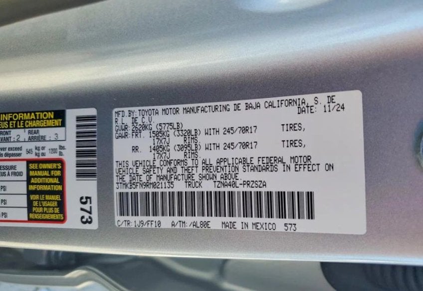Out of State Buyers2024 Toyota Tacoma Double Cab - SR5 Pickup 4D 5 ft - 2WD - 3TMKB5FN9RM021135
